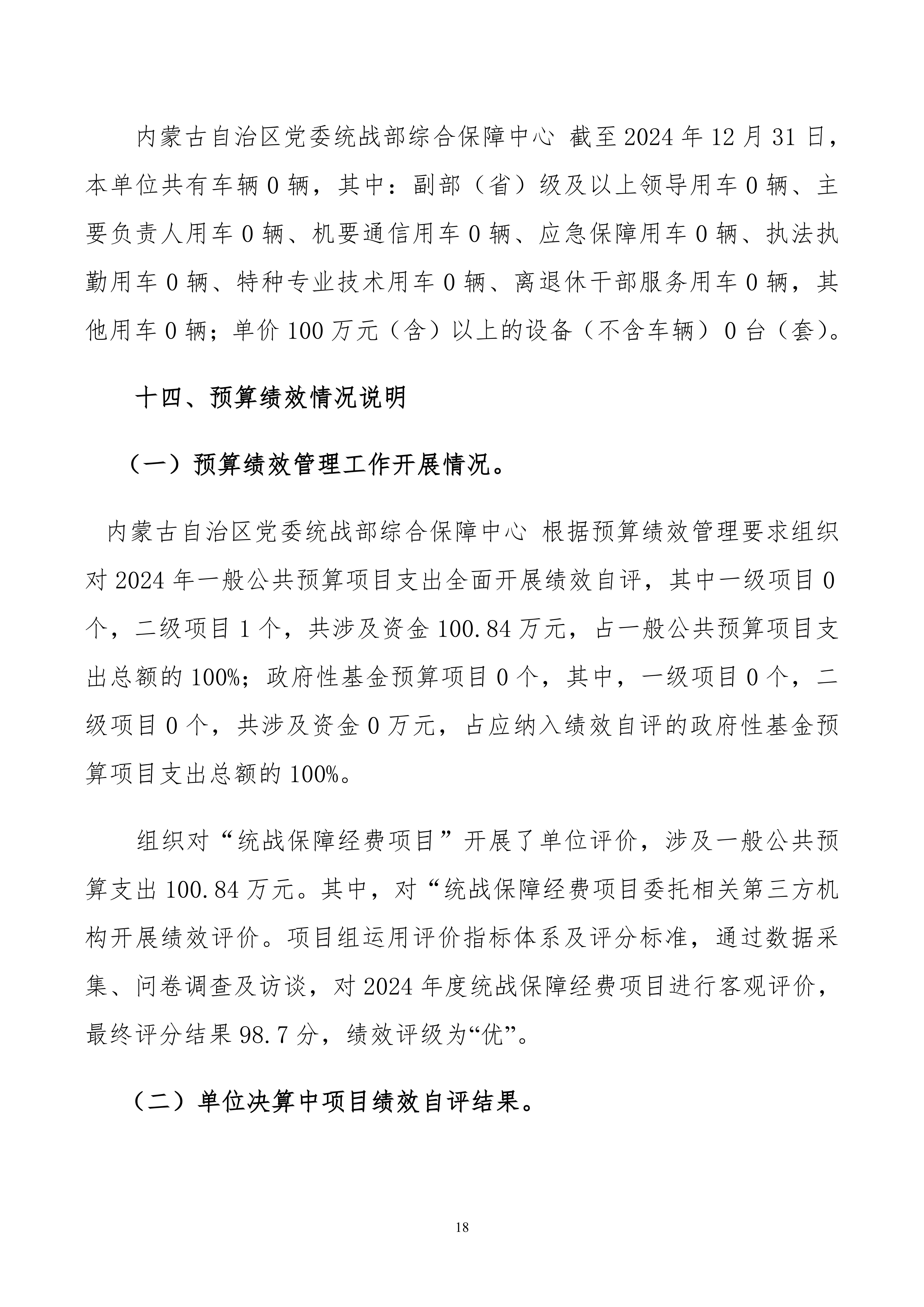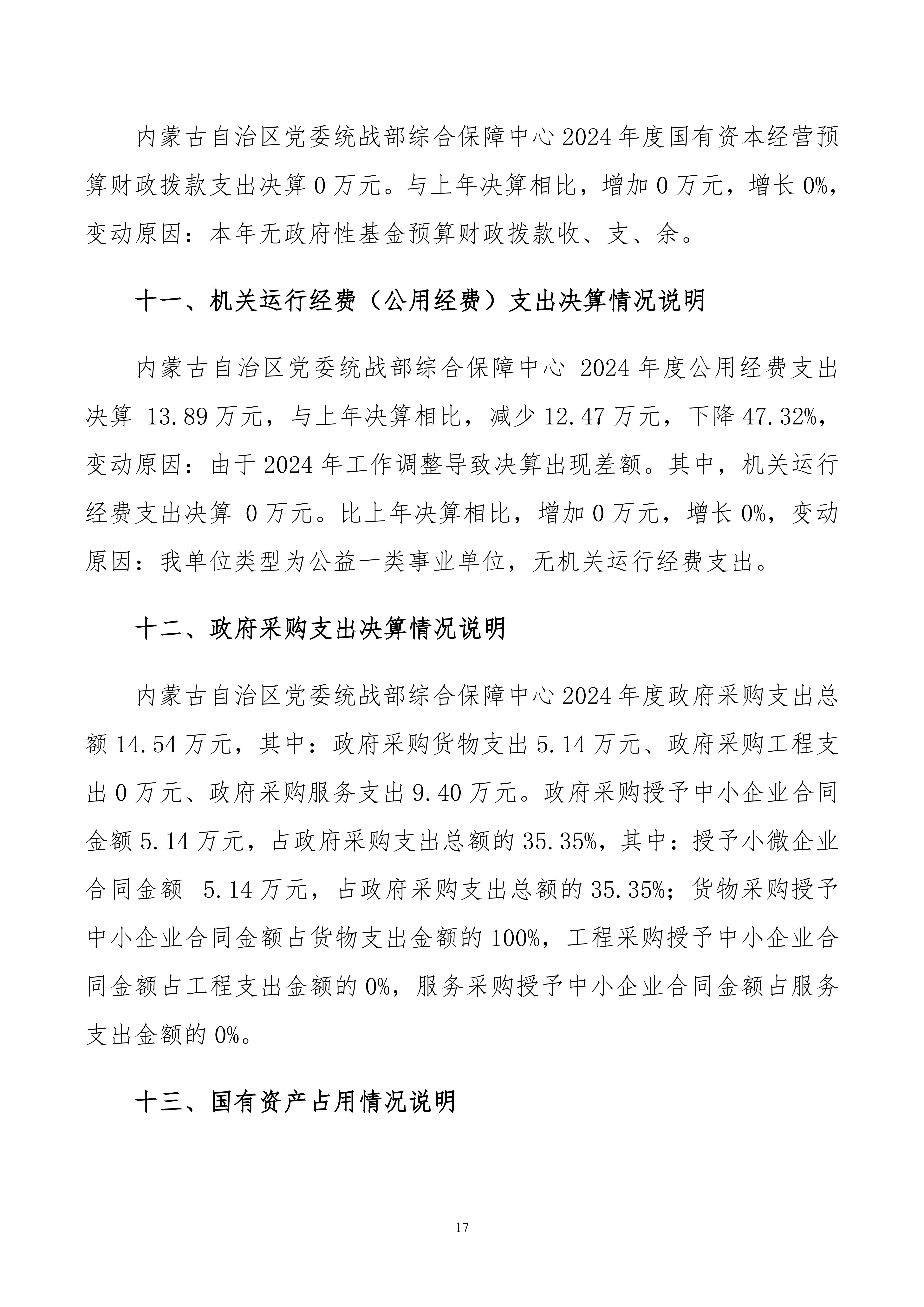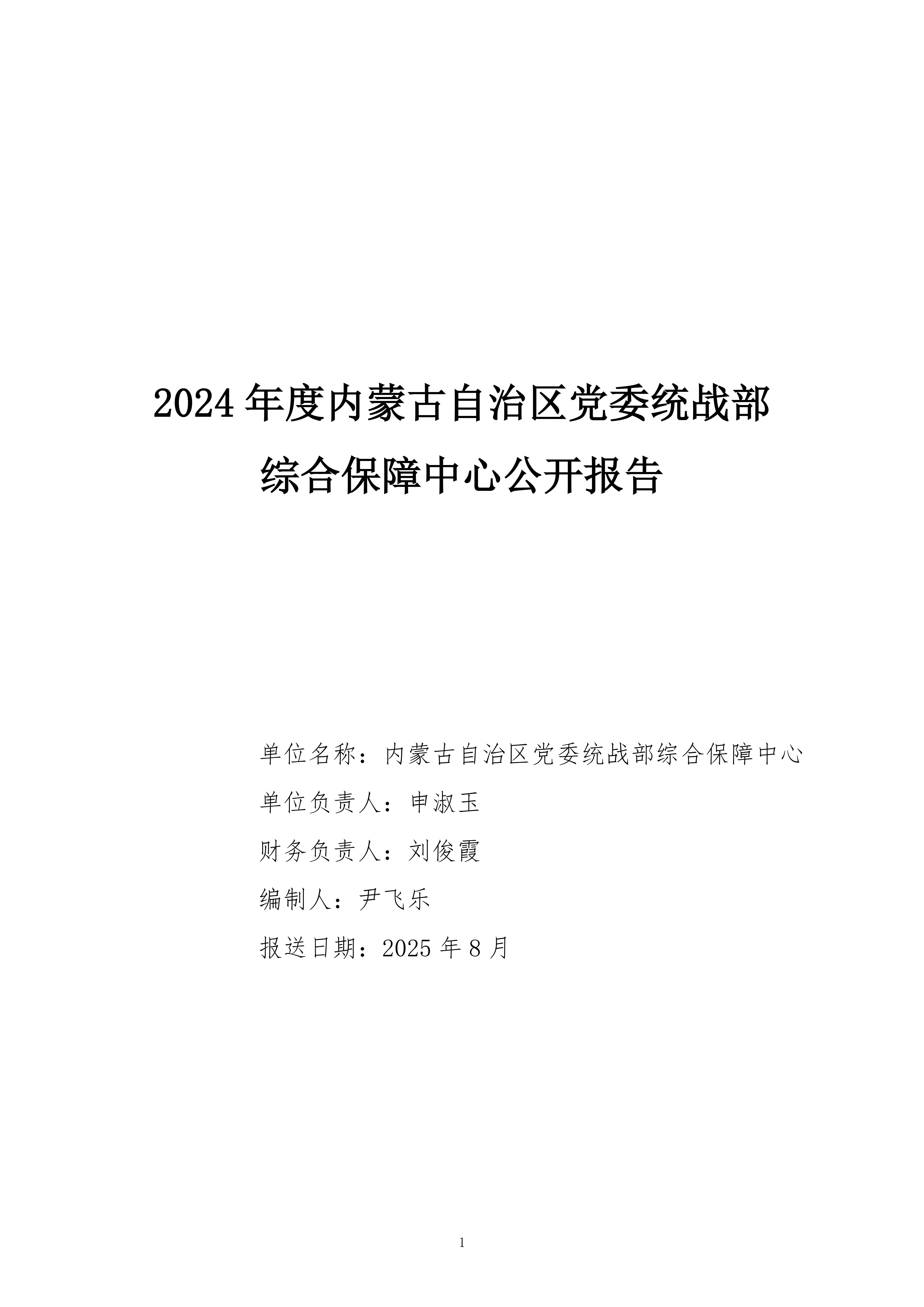 2024年度内蒙古自治区党委统战部 综合保障中心公开报告