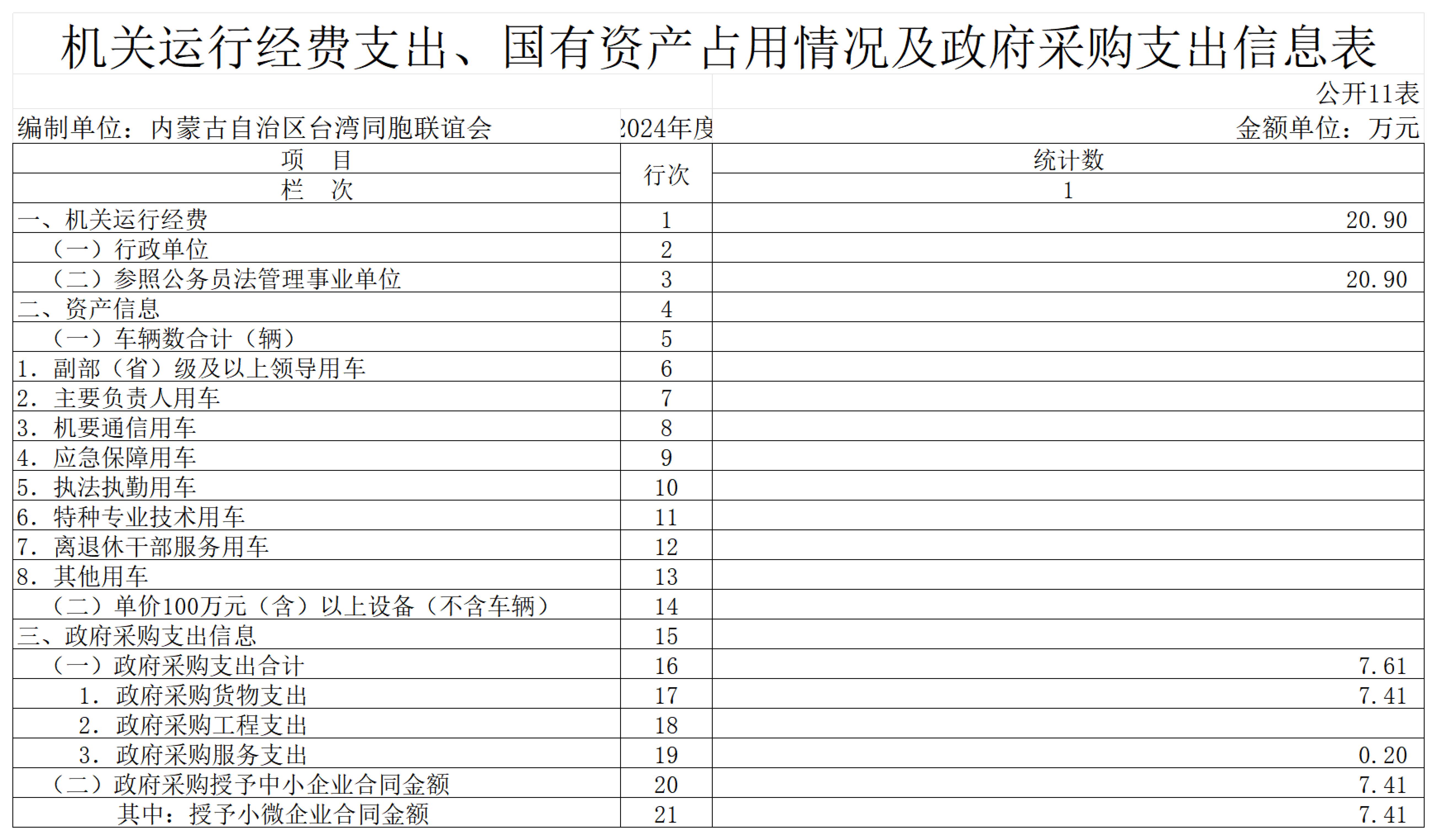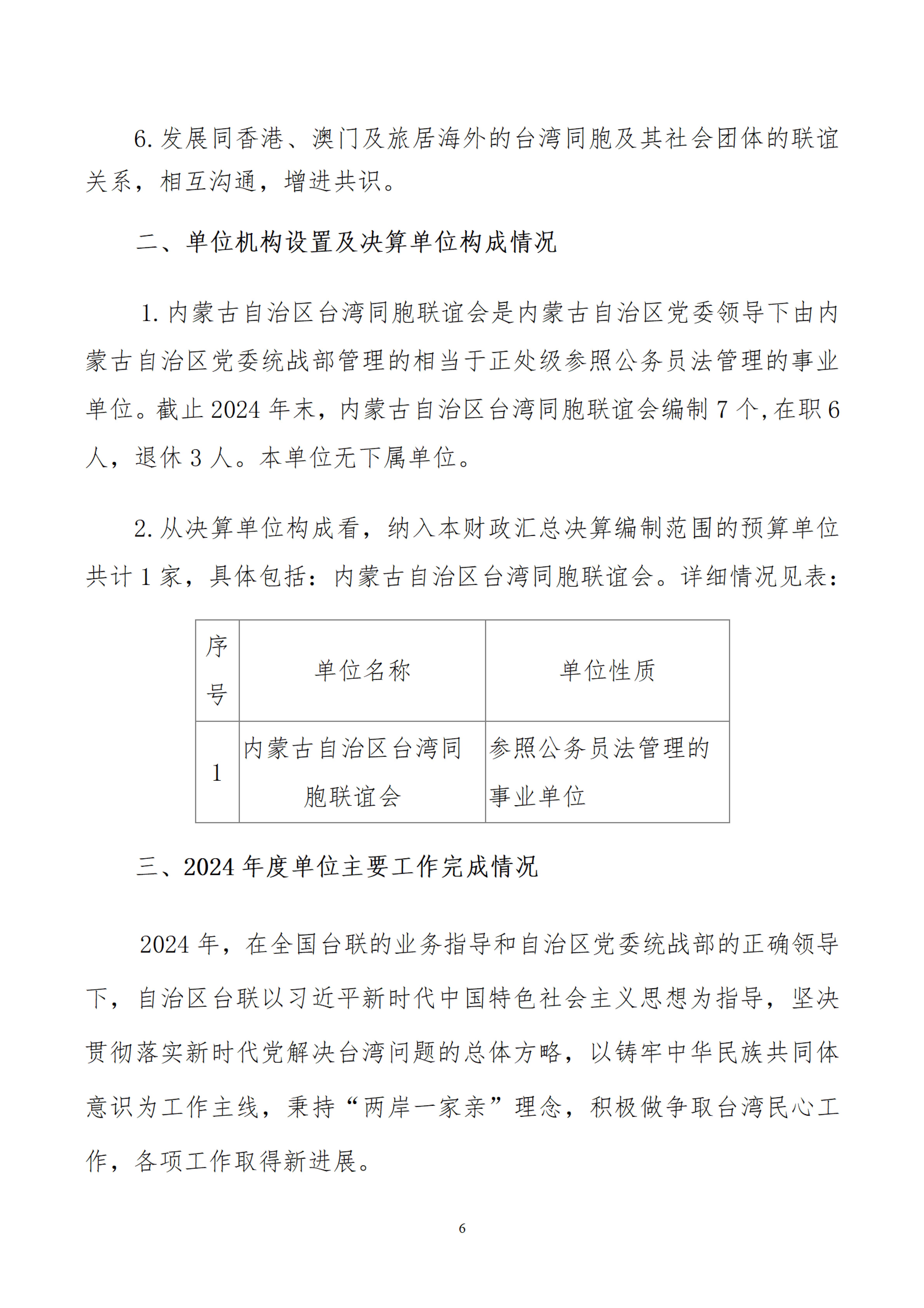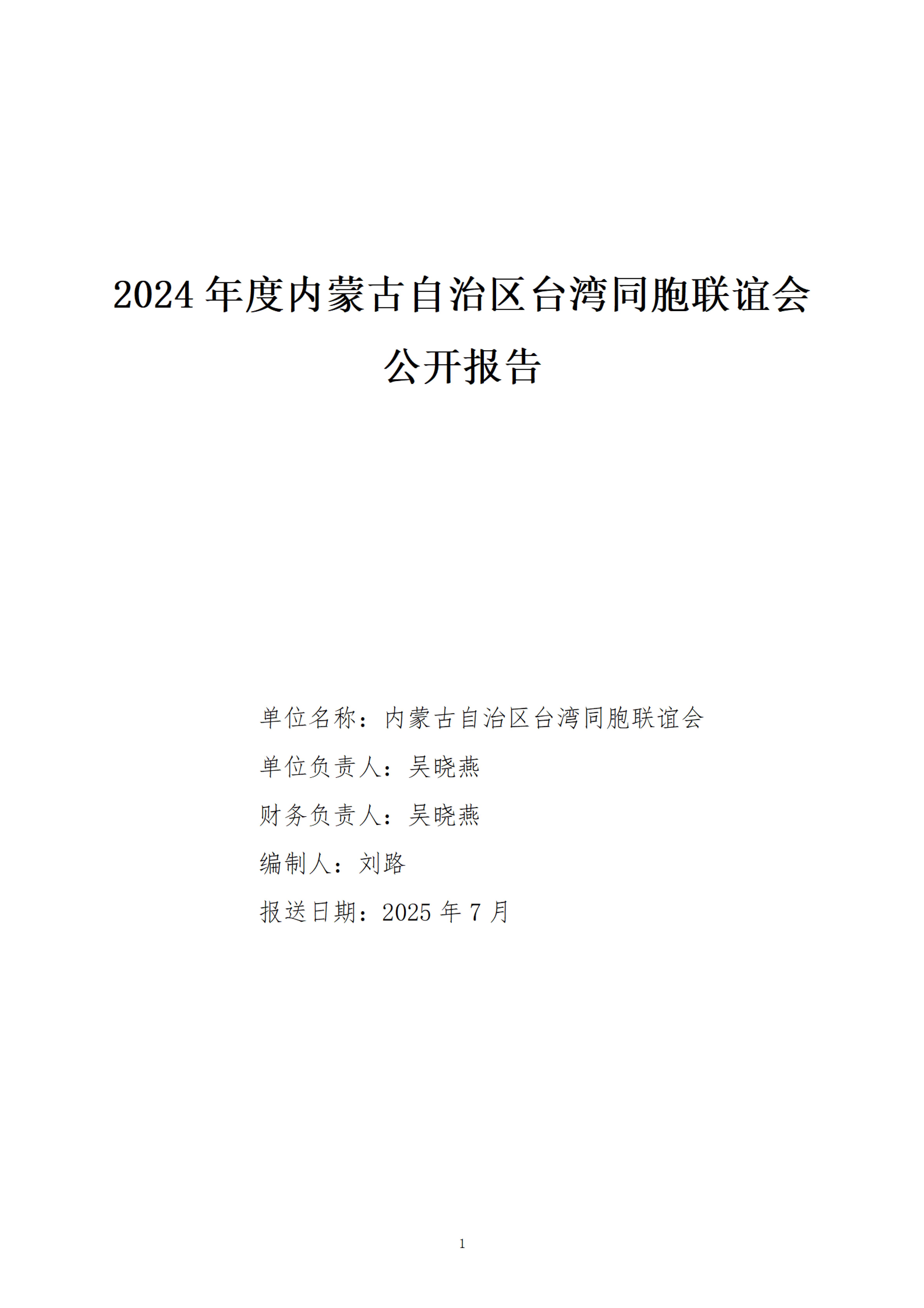 2024年度内蒙古自治区台湾同胞联谊会公开报告