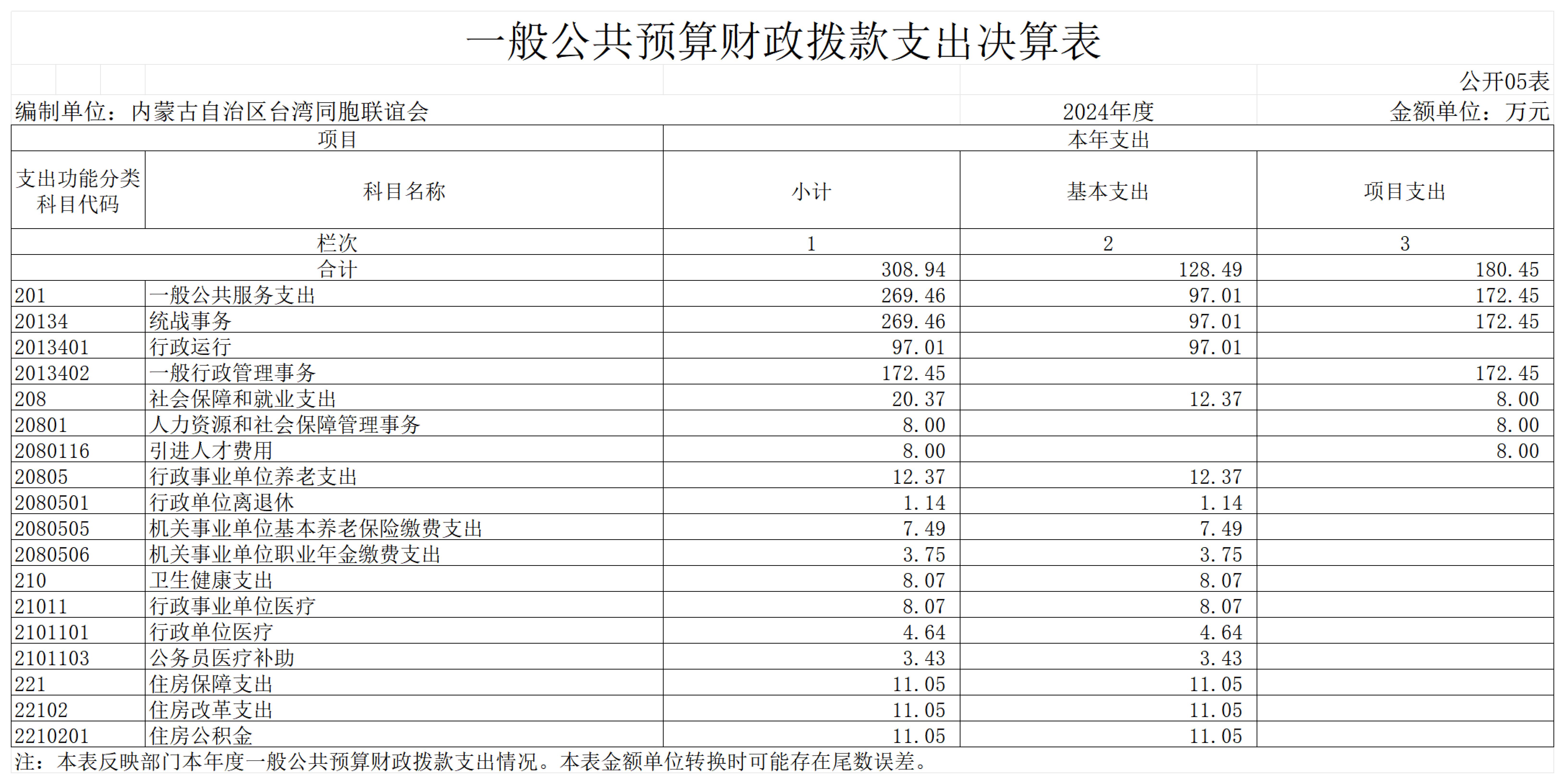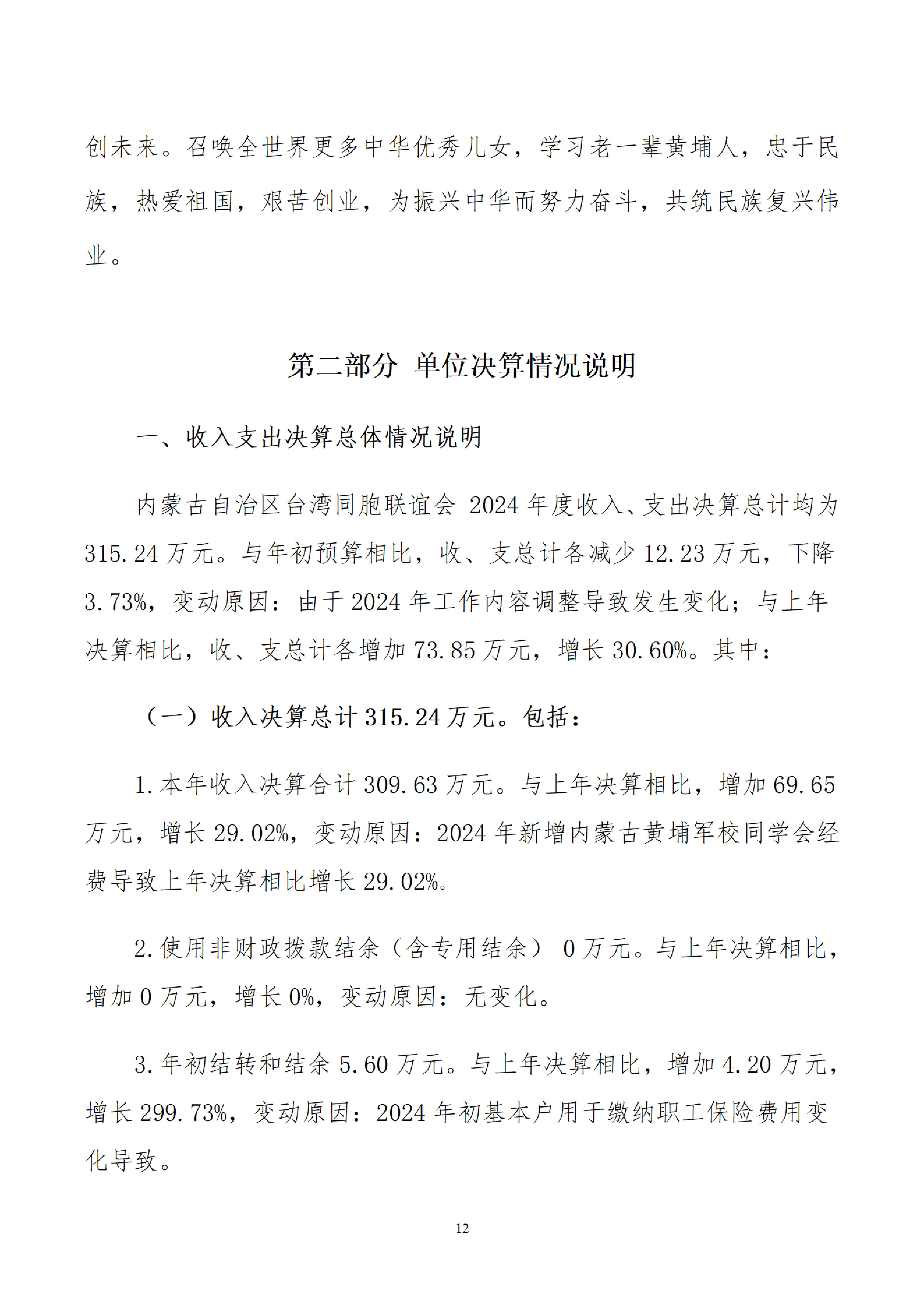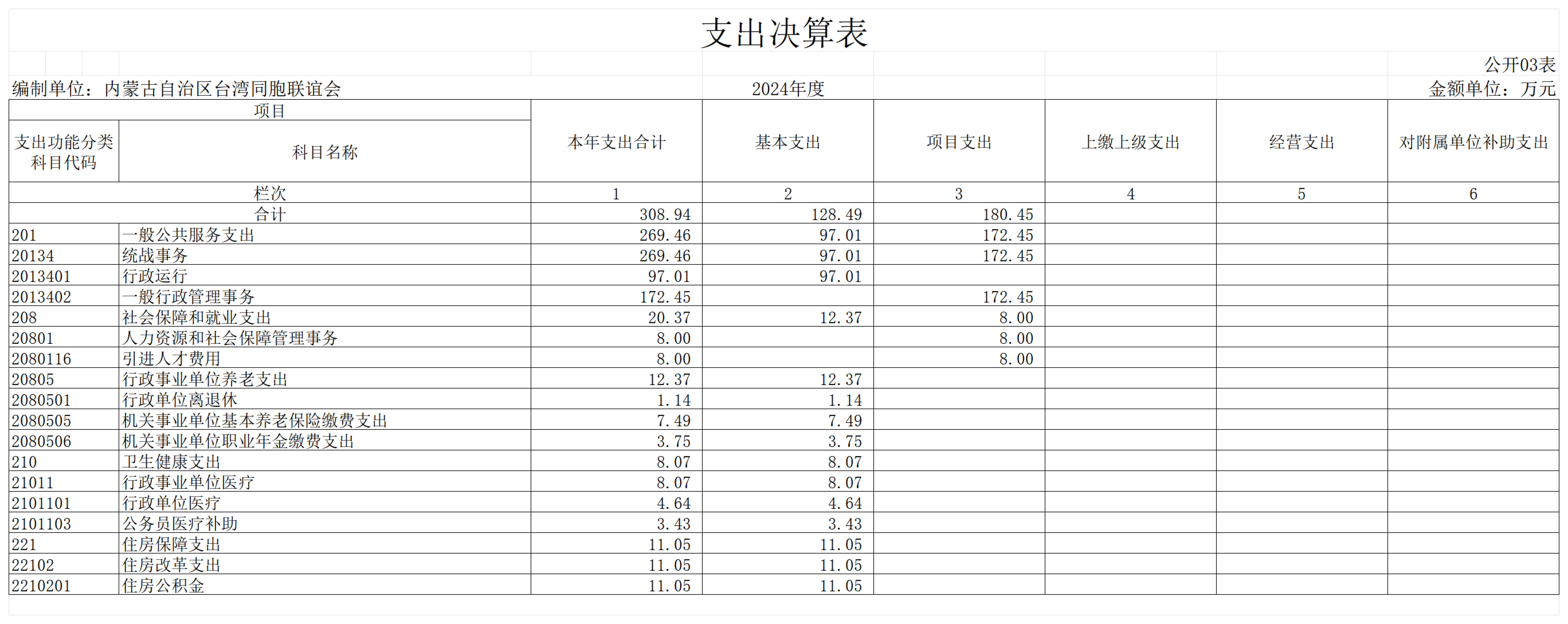 2024年度内蒙古自治区台湾同胞联谊会公开报告