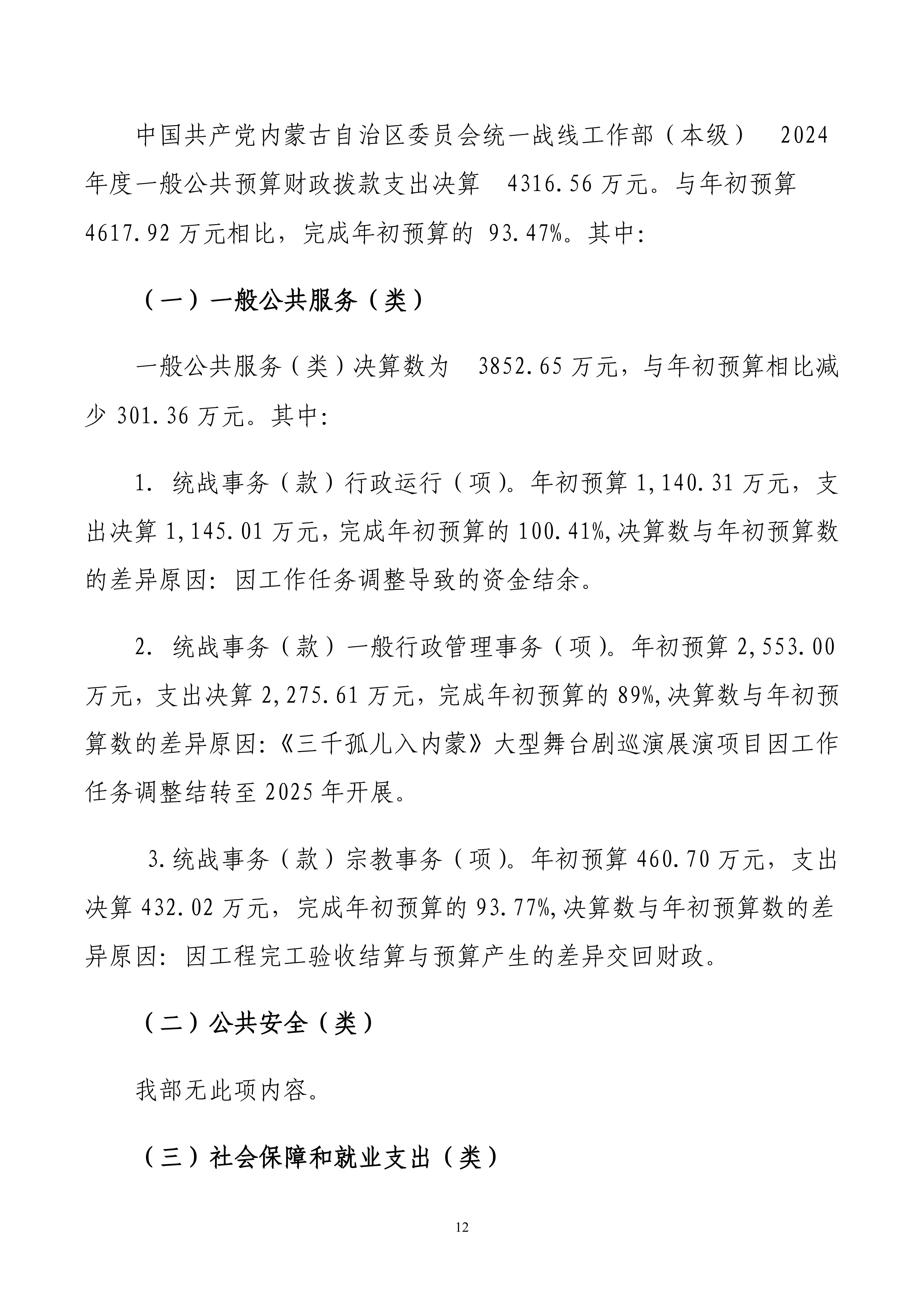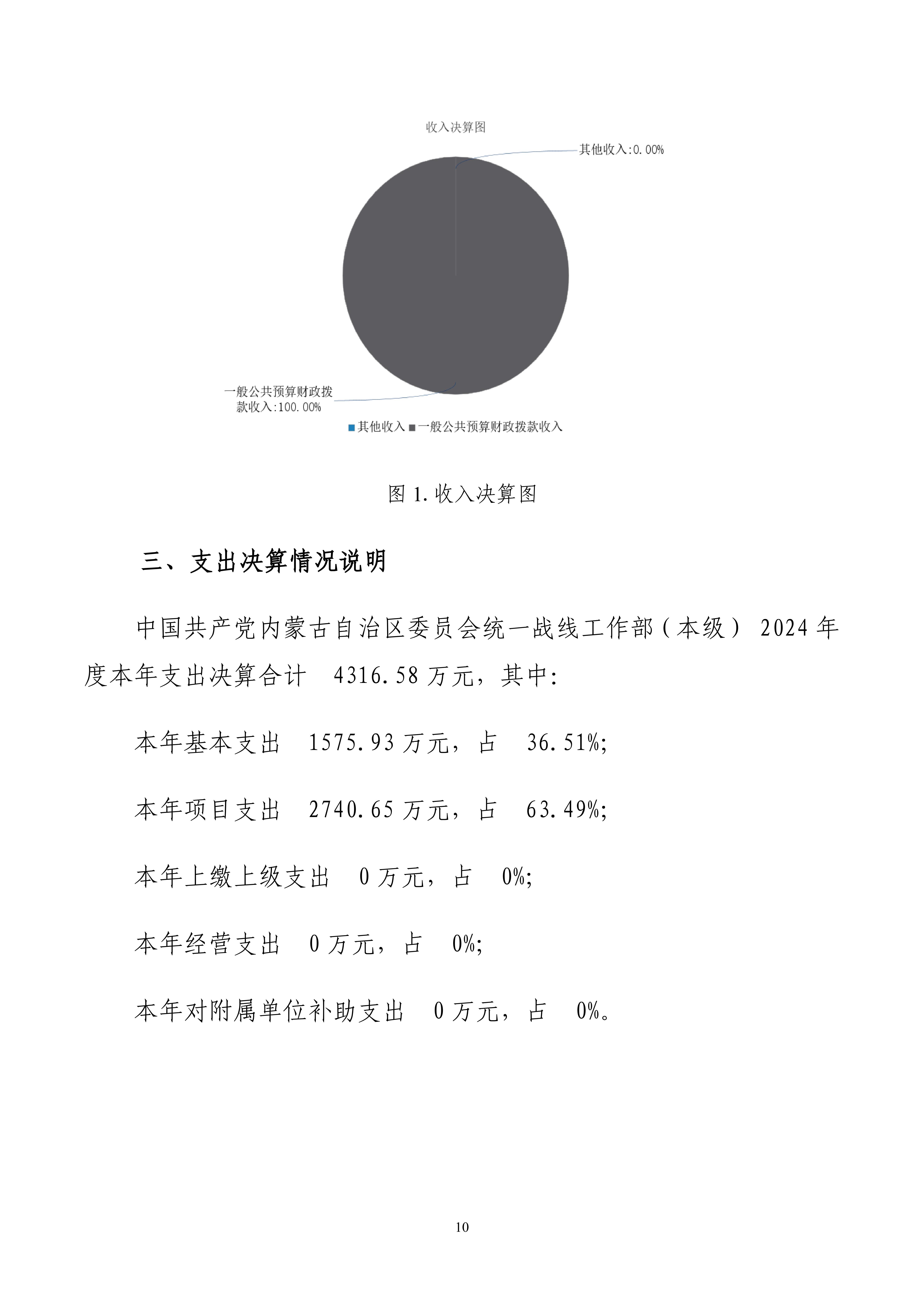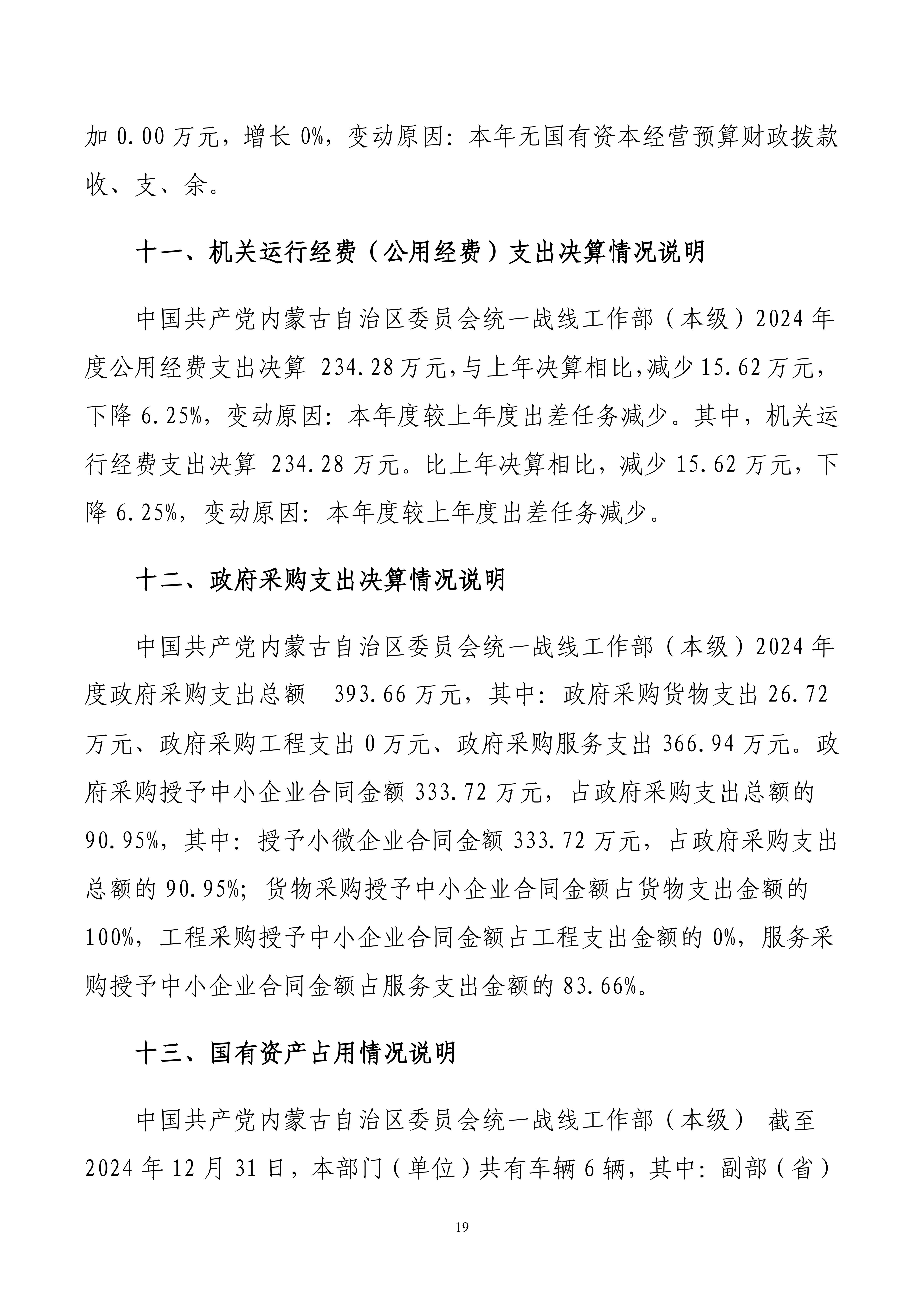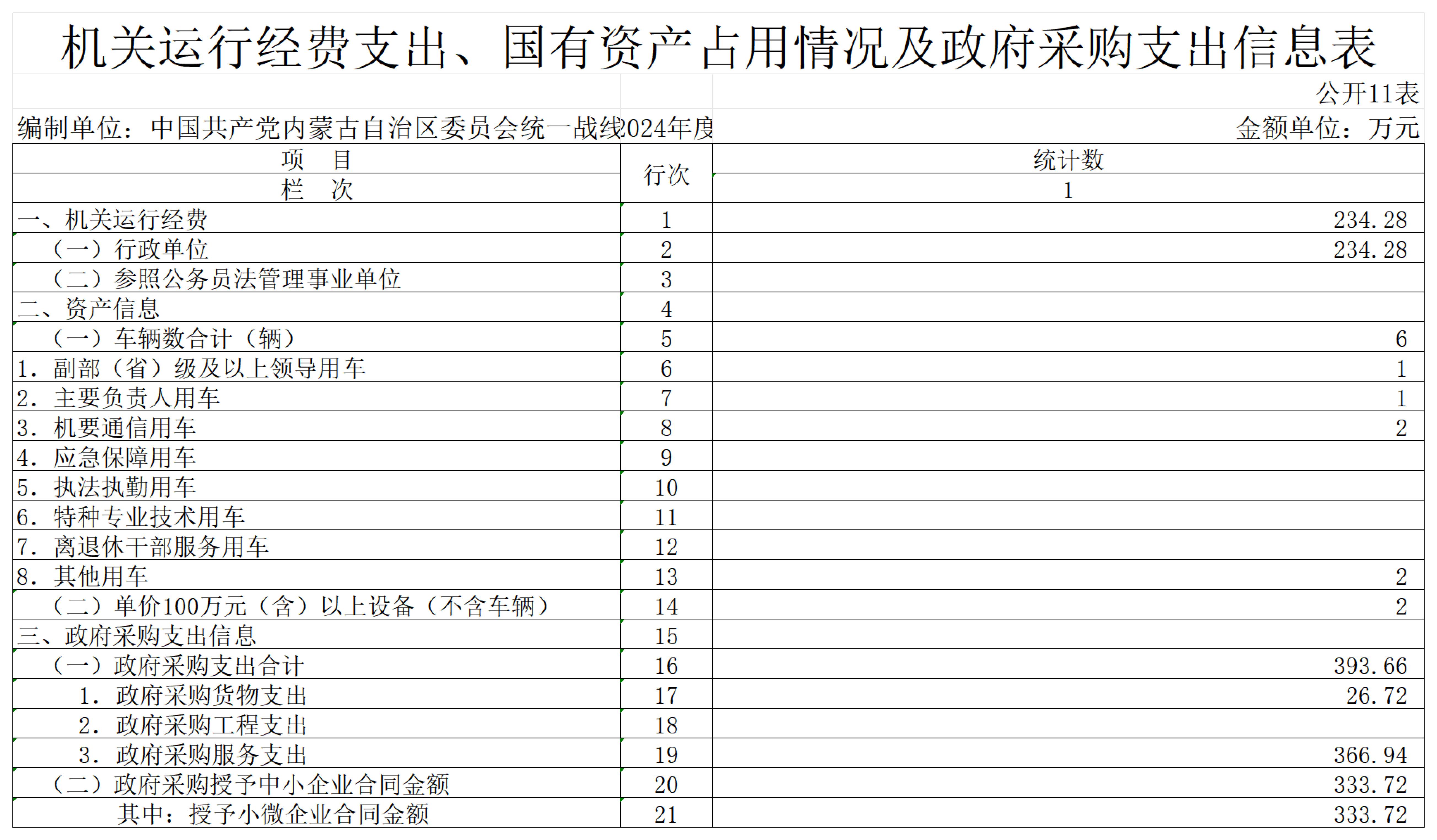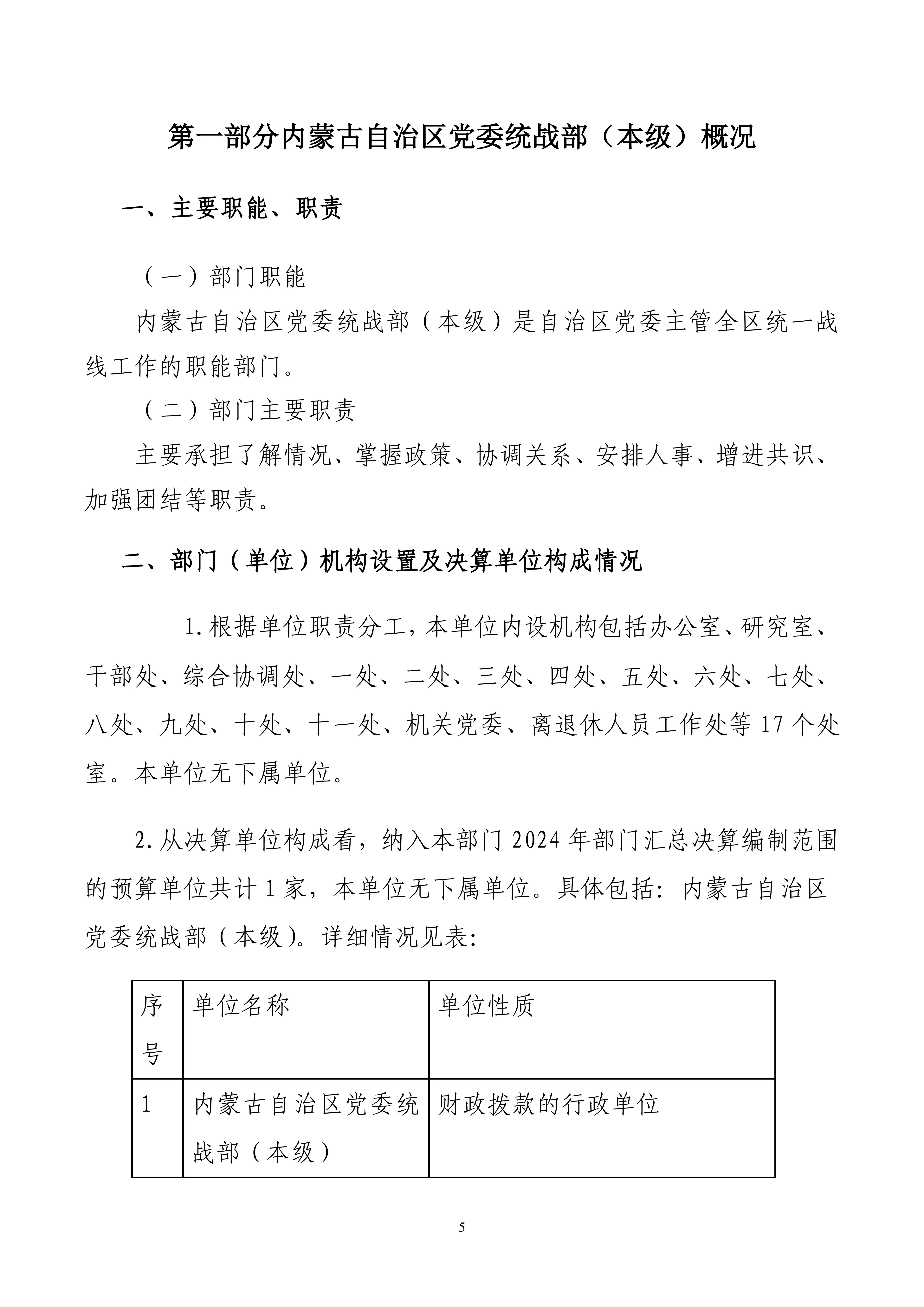 2024年度中国共产党内蒙古自治区委员会统一战线工作部(本级)公开报告