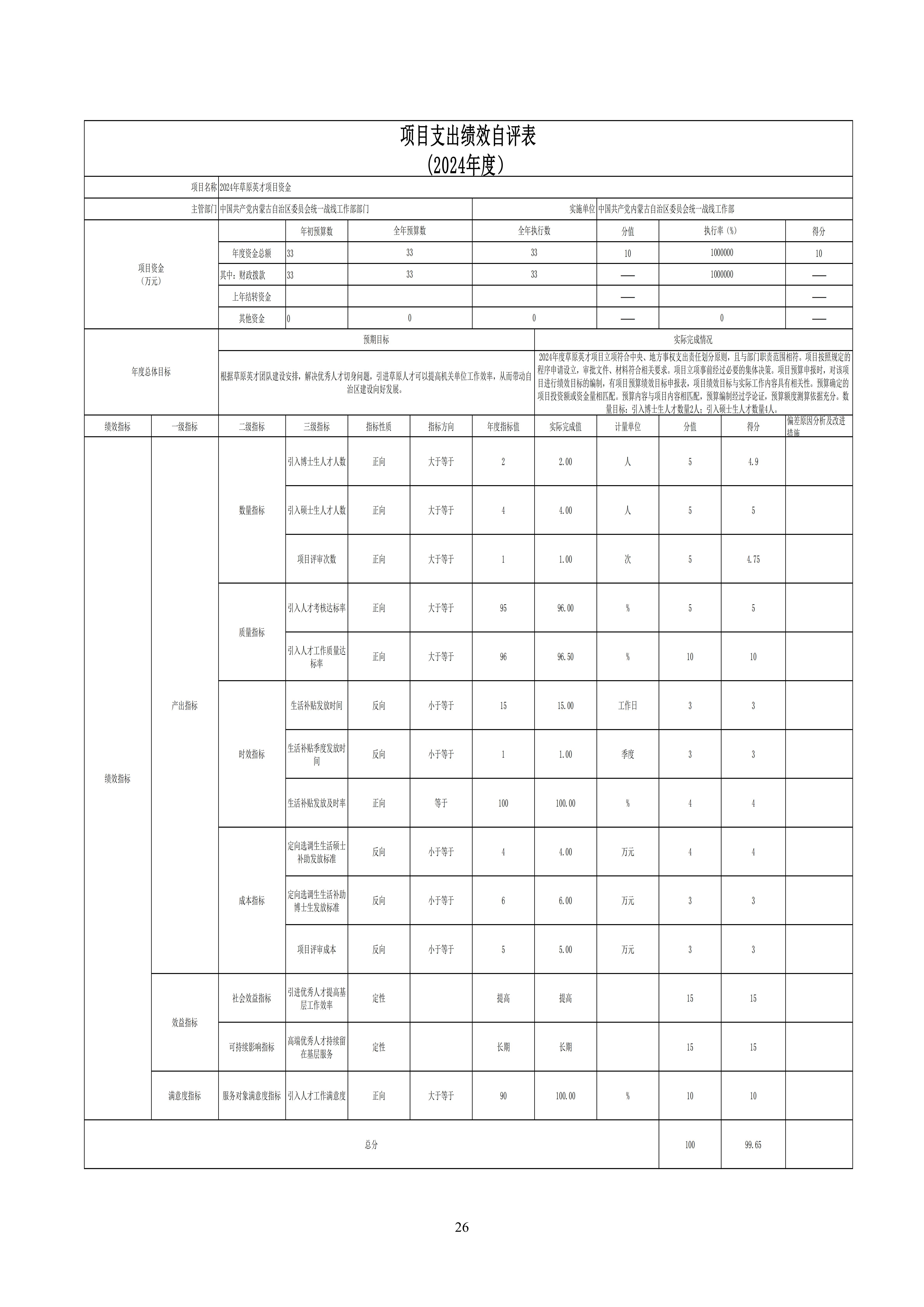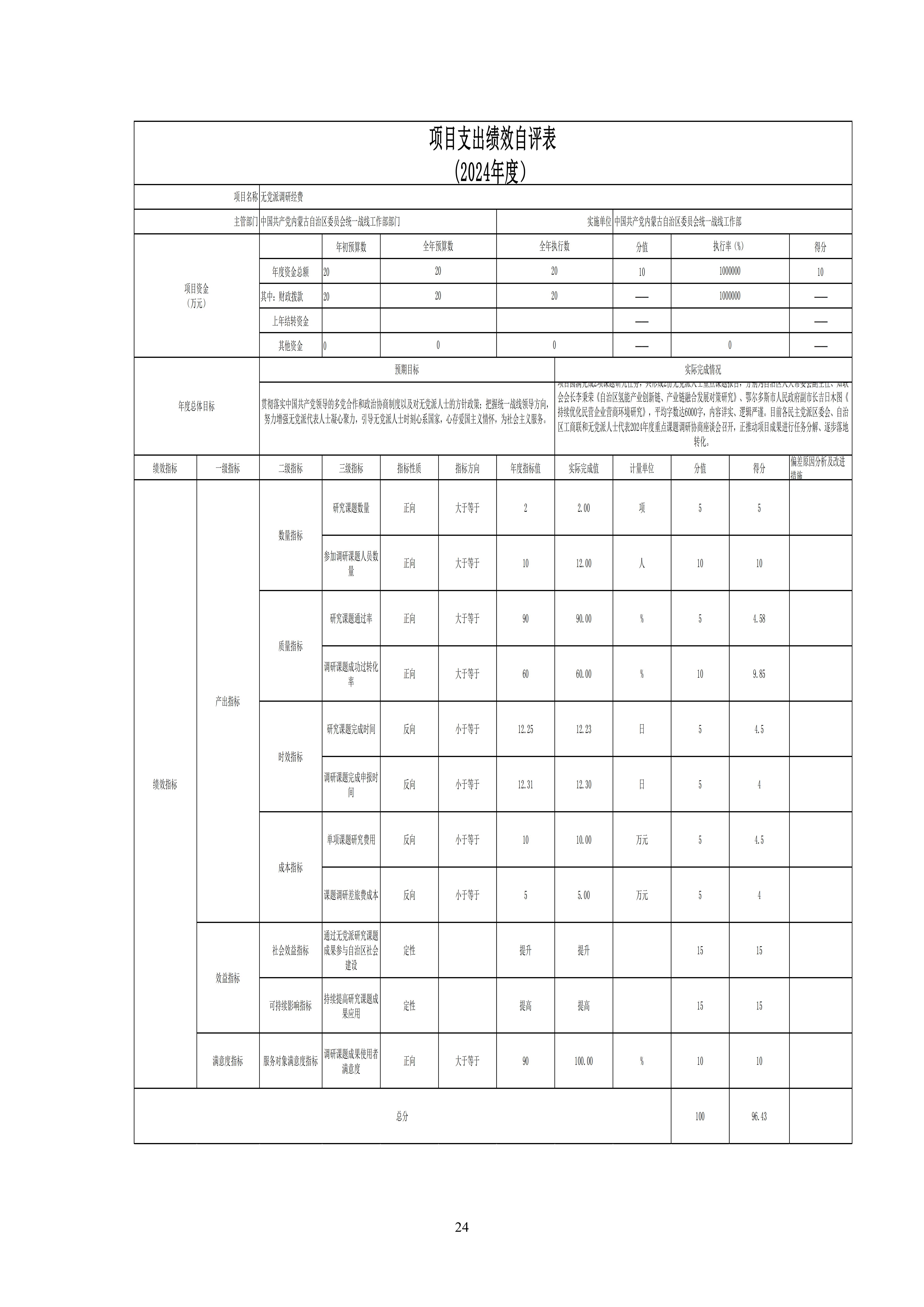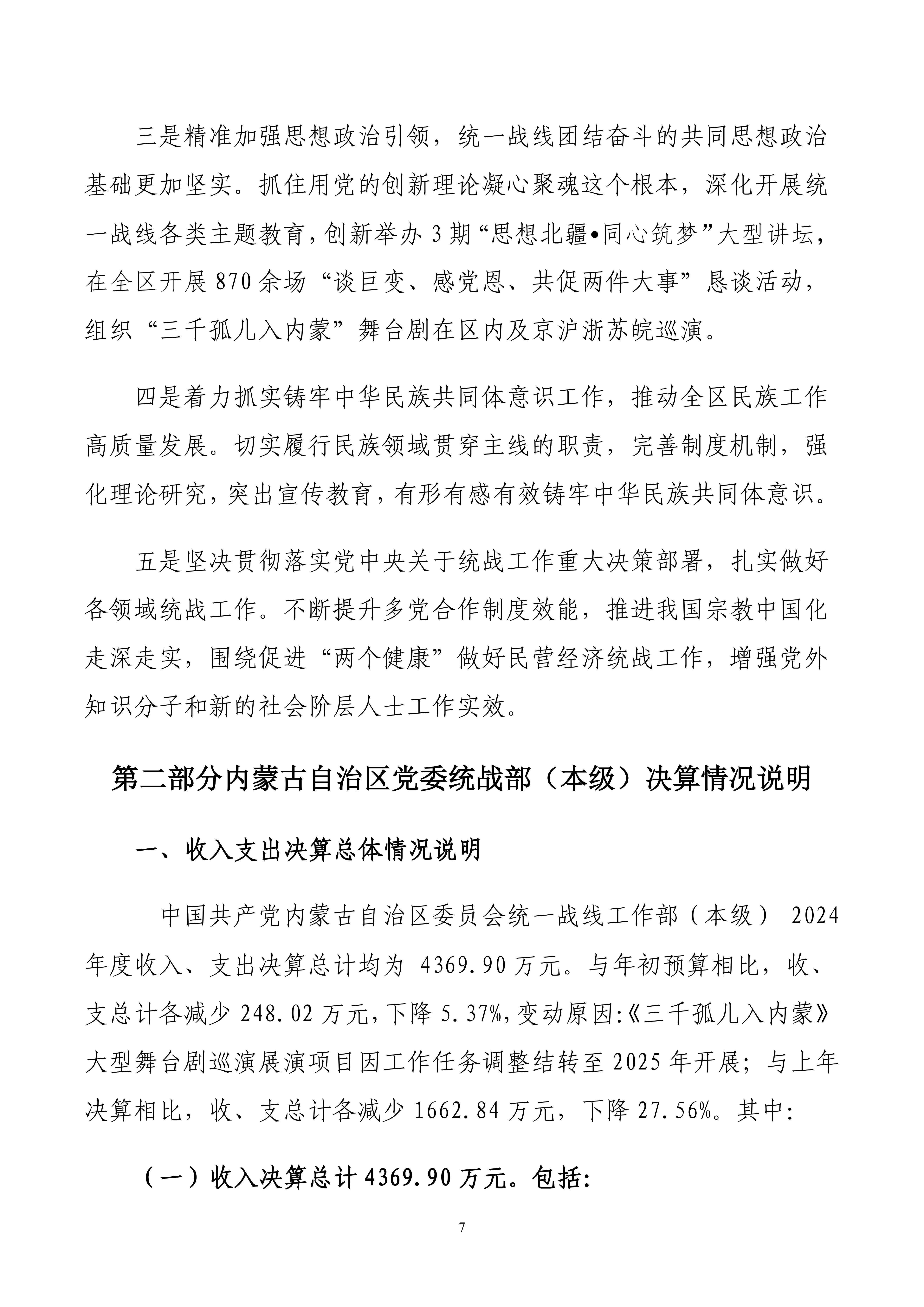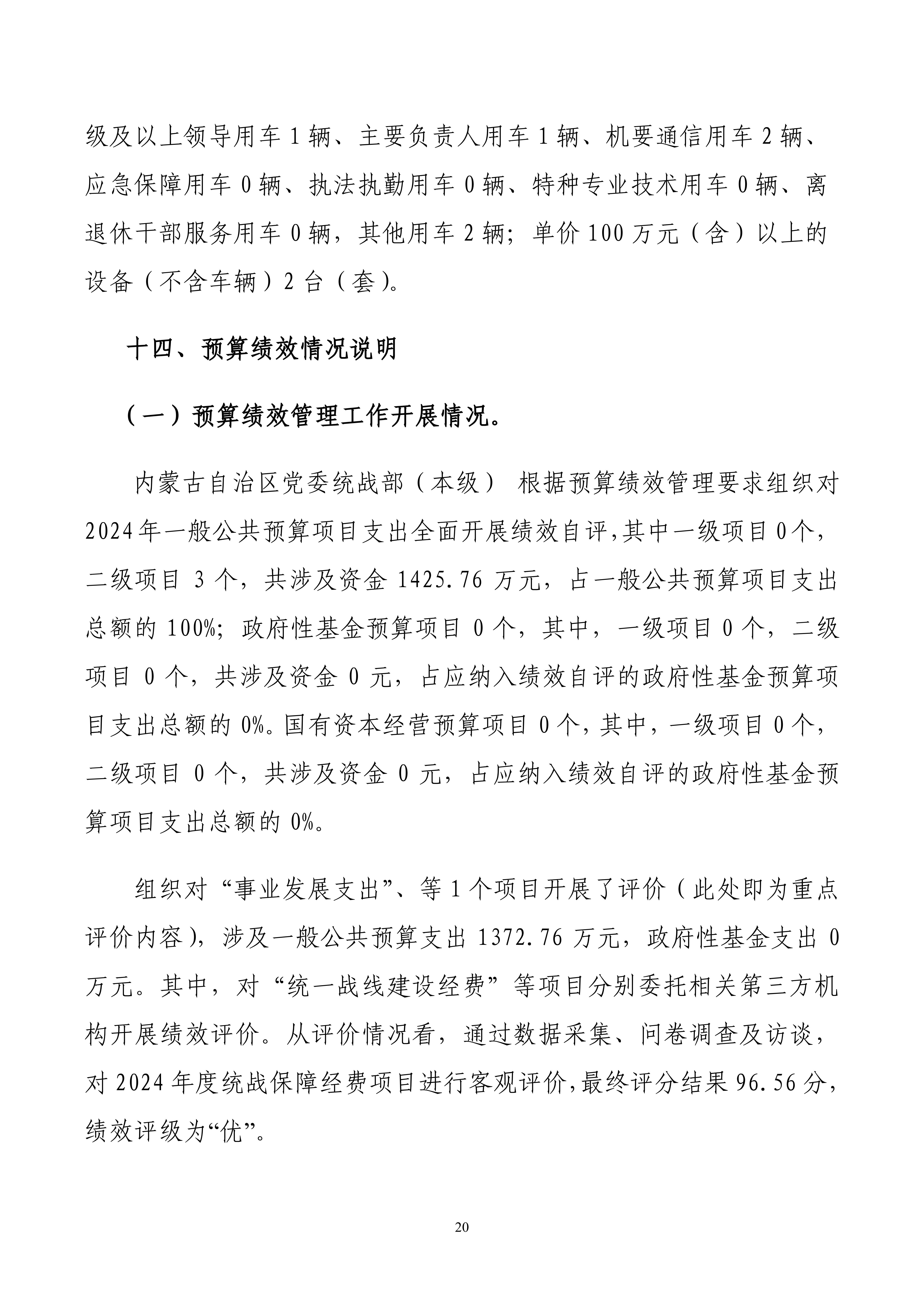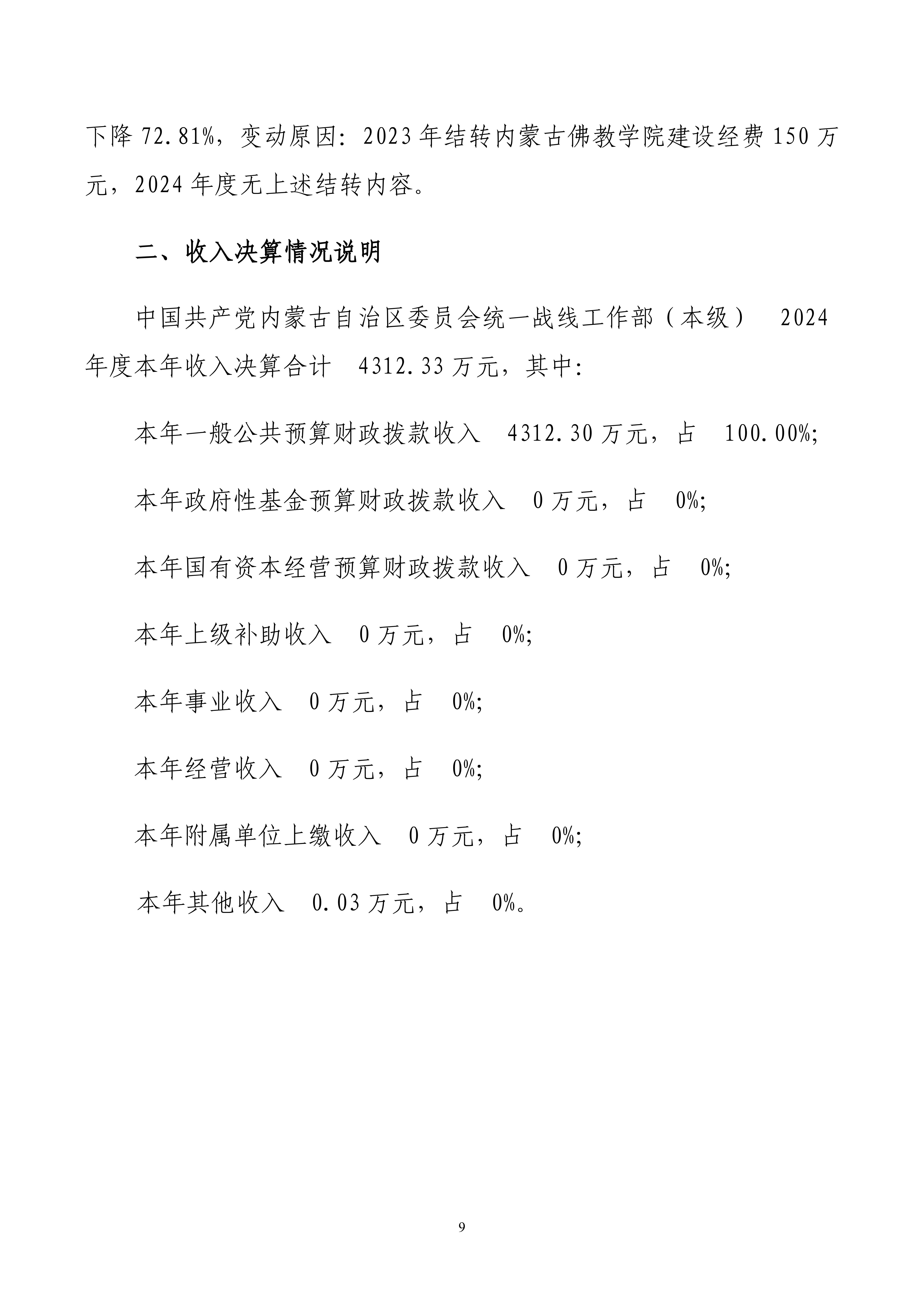2024年度中国共产党内蒙古自治区委员会统一战线工作部(本级)公开报告