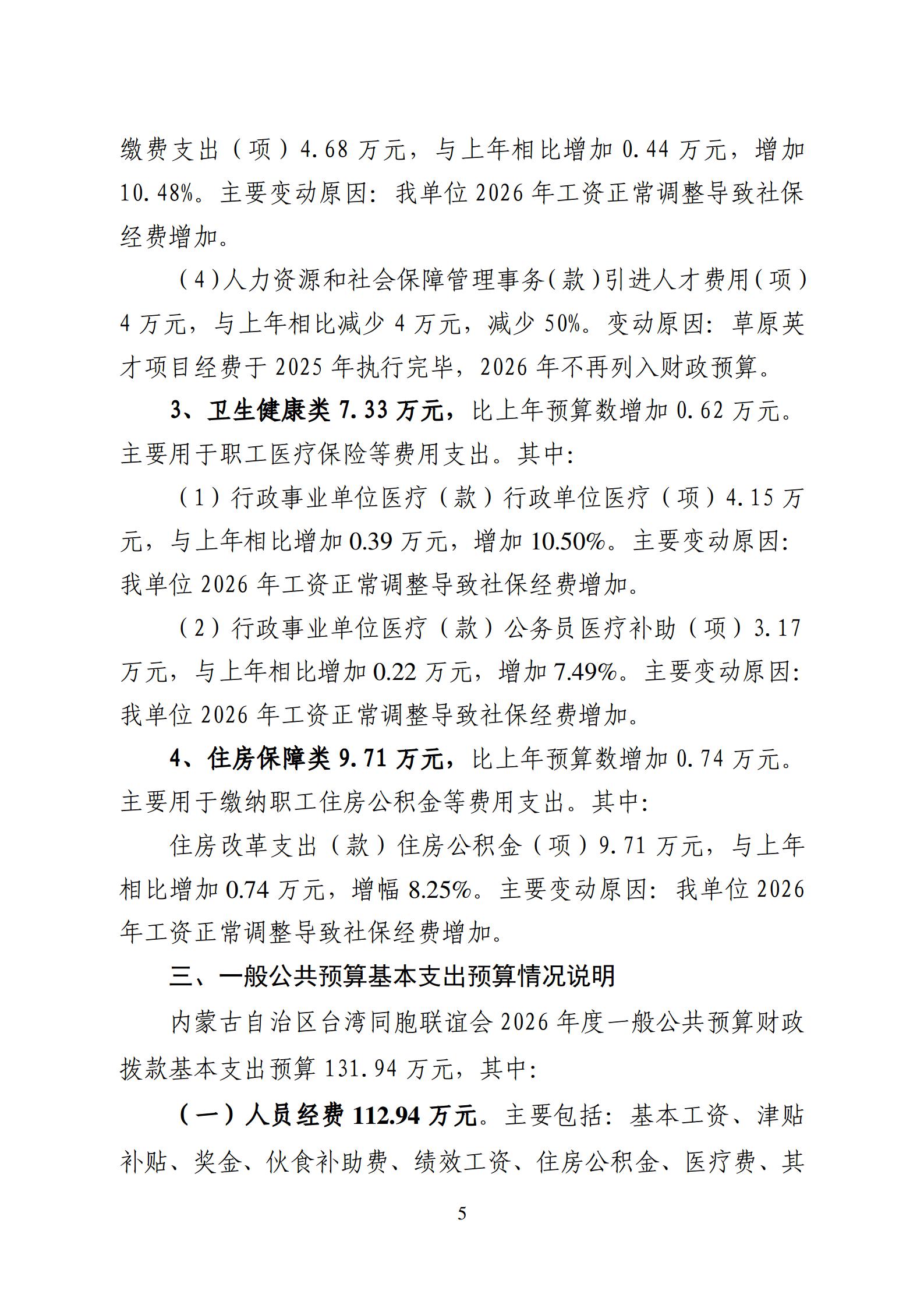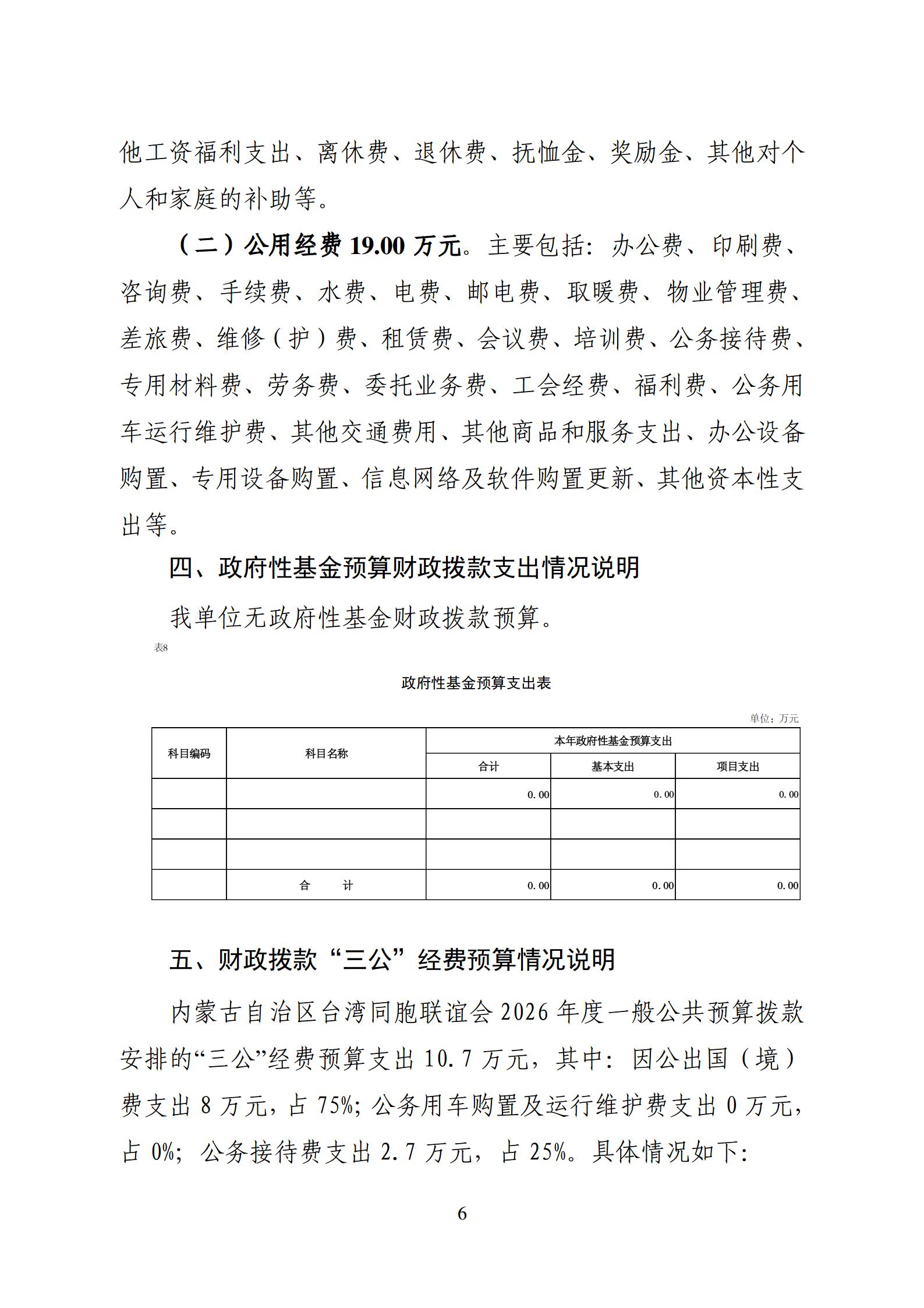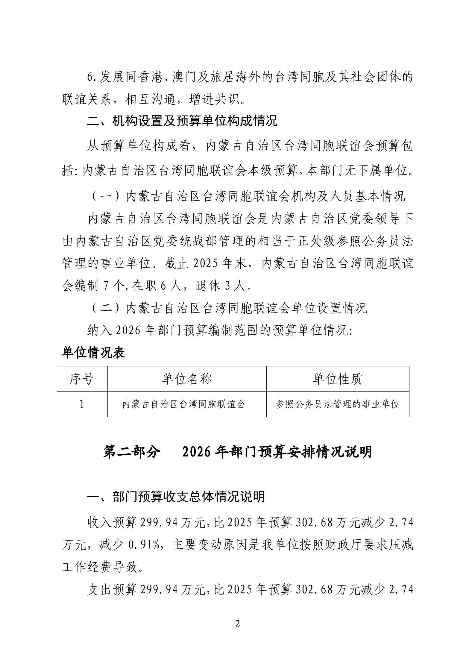 内蒙古自治区台湾同胞联谊会2026年单位预算公开报告